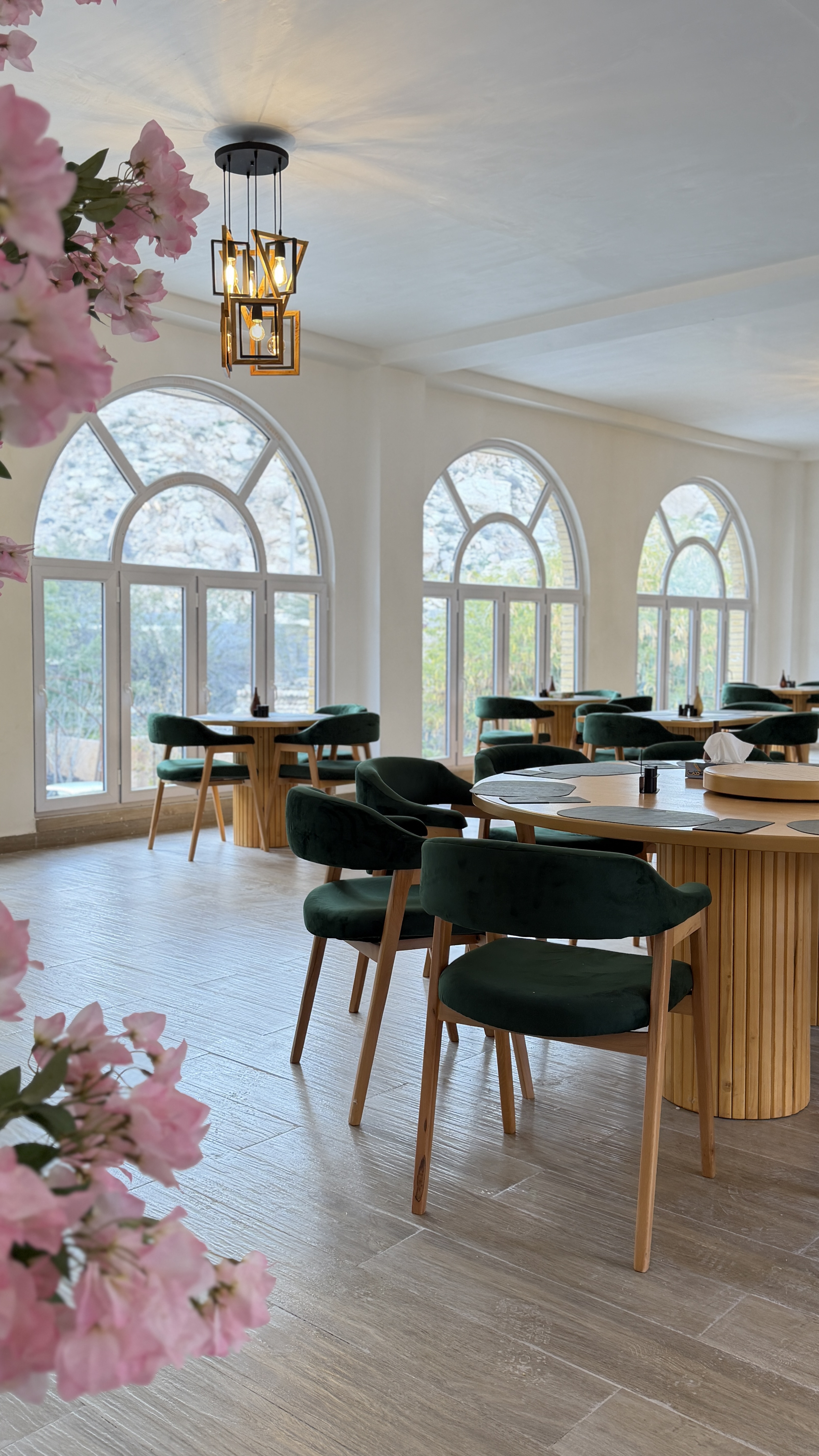 اگر به دنبال فضایی خنک و مدرن با دید کامل به کوه هستید، سالن اصلی با پنجرههای قدی بهترین انتخاب برای شماست.